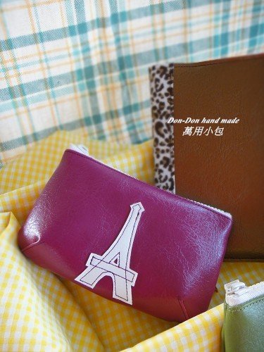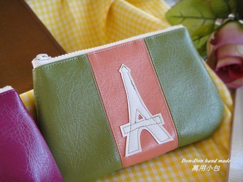 這款立體包,咚咚直接車縫,沒有拼接其它皮片,正面也車縫上鐵塔,素素的也很好看。
