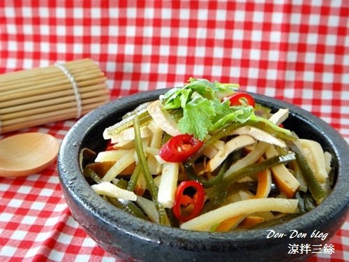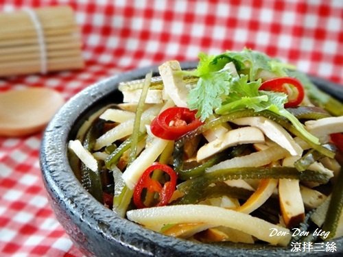 想要涼拌什麼食材都看個人喜好,這份"涼拌三絲",加入了我愛的海帶絲.真空沙拉筍還有黃豆干,